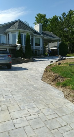 Pavé-Uni Permacon, Excavation,tourbe,haie de cèdre,Mur de soutien, muret, pavage, bitume,escalier,trottoir,patio, bloc, mur de roche