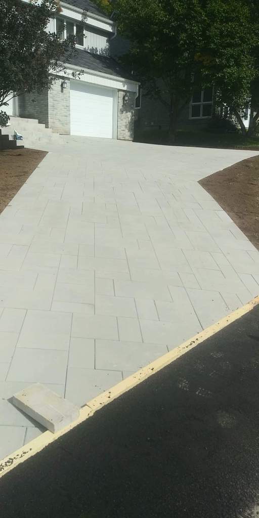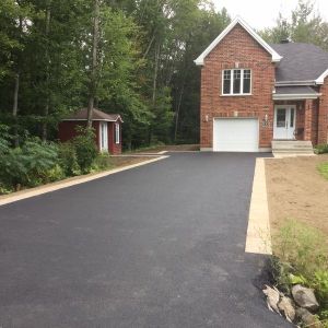 Pose de Haie de cèdre et tourbe, Pose de Pavé-Uni, Pavage, Bitume,